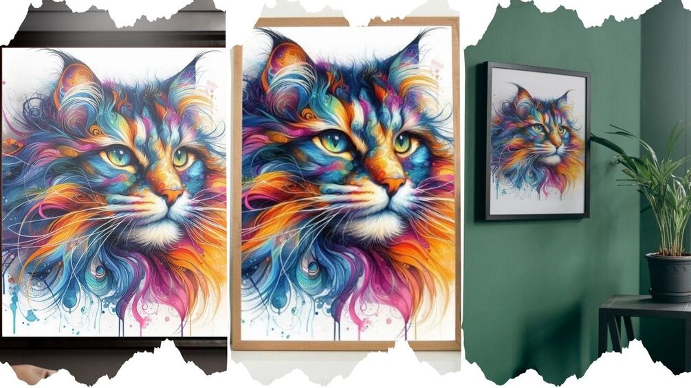 Add a touch of bold elegance to your space with this mesmerizing cat portrait. This artwork features a detailed feline face in an explosion of rich, abstract watercolor hues. Ideal for cat lovers and modern art enthusiasts, this piece brings warmth and personality to any room be it your living space, bedroom, or office. Printed on premium-quality materials for lasting color and clarity.